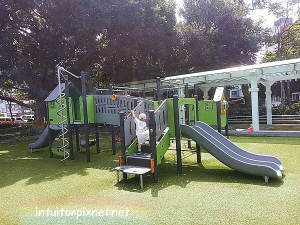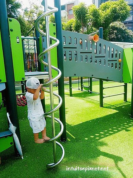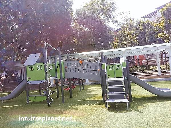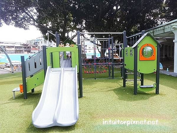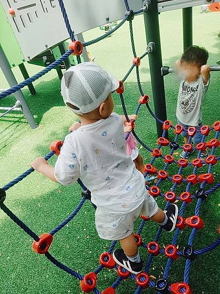 遊具上方部分有樹蔭,整體而言陰天或傍晚再來遊玩較不熱。