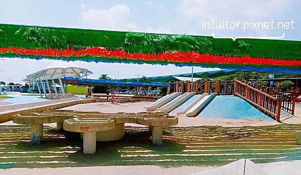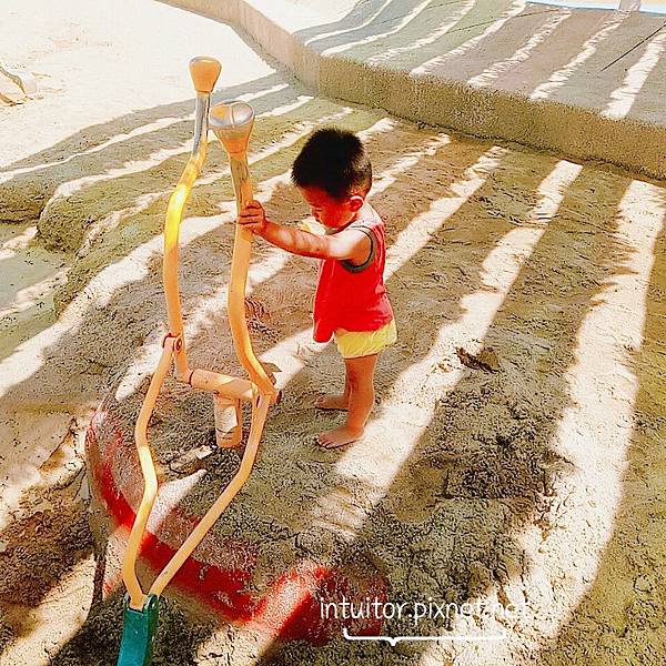 沙坑上方有遮陽設施,不怕熱暈頭。