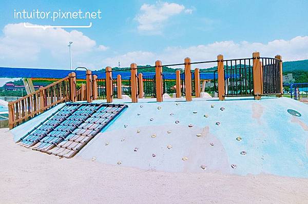 滑梯雙側有設置無障礙坡道,行動不便孩童也能夠一同玩耍。