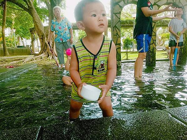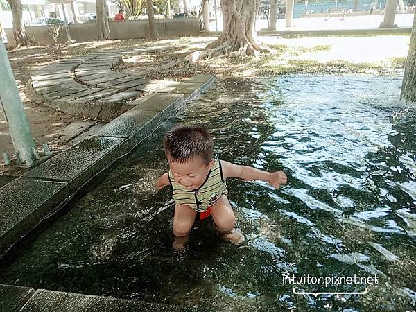 加上整個戲水區都在林蔭之下更讓我心情大悅,立馬讓雞腿寶換衣服下去遊玩。戲水區沒有民族公園大,光是有林蔭遮蔽本身就大大加分了。