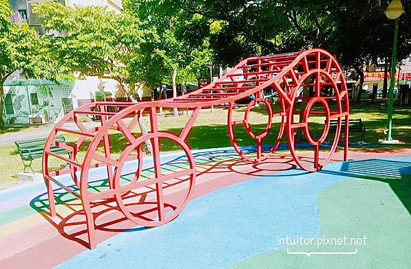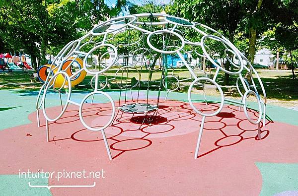 這組巨蛋式攀爬架,外形跟大安國小一樣,大安國小的外觀上還加了鈴鼓、波浪板,更添遊戲樂趣。