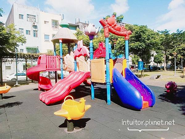 ▼永康公園內的組合遊具、搖搖樂