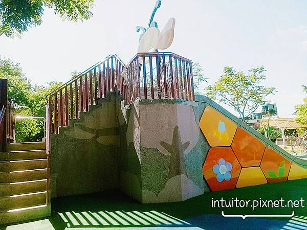 看到這組蜜蜂造型滑梯,不禁想到在桃園後火車站的延平公園有猴子造型滑梯。以動物為主要造景富涵童趣。