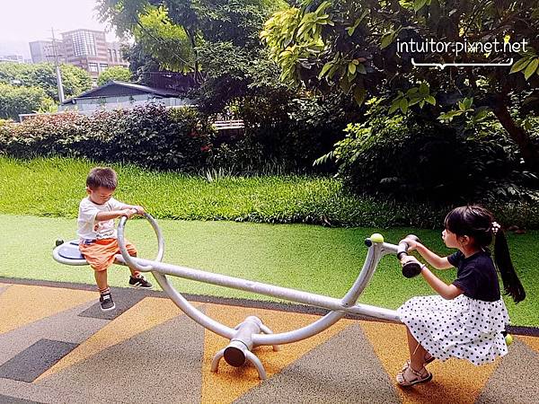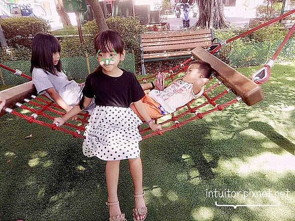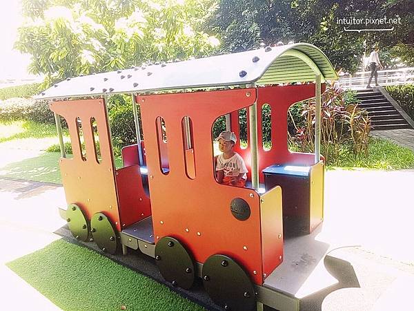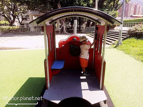 遊戲場融合當地原有歷史特色,新增火車頭、車廂、蹺蹺板、吊床。