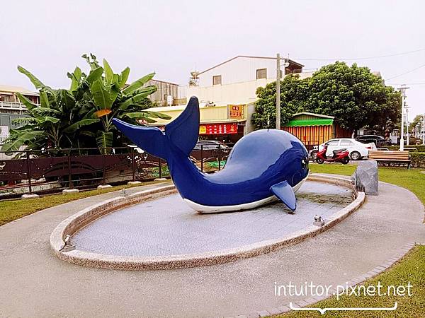 可愛的大鯨魚造型水池,水池深度頗淺,很適合帶孩童在此踩踩水解解暑氣。