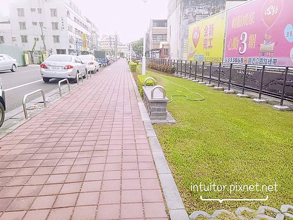 人行步道整理的相當乾淨。鄰近馬路,若有較為年幼孩童需留意安全。