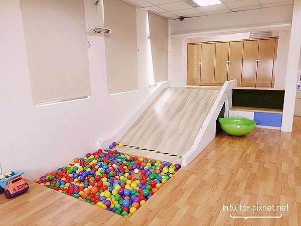 0-1Y7M兒童專區內提供多款嫰嬰玩具、從滑梯溜下來就是球球滿到溢出來的球池