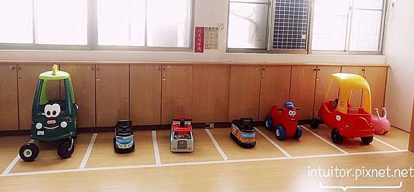 新市親子館內提供多款小車車讓兒童遊玩,還記得我們在萬華親子館、士林親子館也有在室內玩小車車