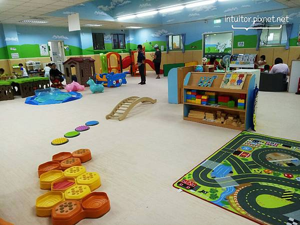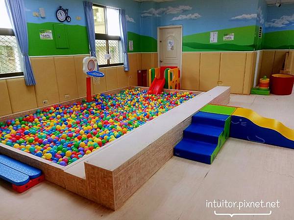 從入口處遠遠看原本我還以為這個球池區的邊緣是用水泥加磁磚制成的,近距離觸摸之後發現原來是巧拼拼湊成的,兒童在此遊玩不用害怕撞到會嚴重受傷。