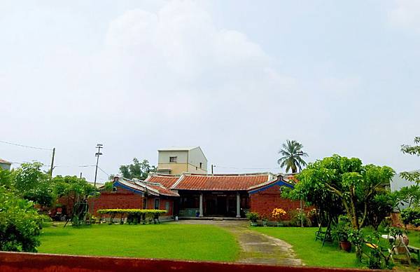 吉貝耍內最氣派的建築,建材講究、彩繪華麗。可惜是日我只能單憑外側文字介紹,加上在圍牆外簡略探向古厝想像其風華。在此看解說牌時,古厝內看守的狗兒隔著大門在對我吠叫,沿路一直往前走,我發現這裡的民宅多會養狗。繼續前行到一涼亭,有一黑狗不停對我吠叫,還跟了上來,牠見我對牠的凶狼吠鳴不為所動,加上我又對牠好言好語,後來停止吠叫還想跟著我散步。
