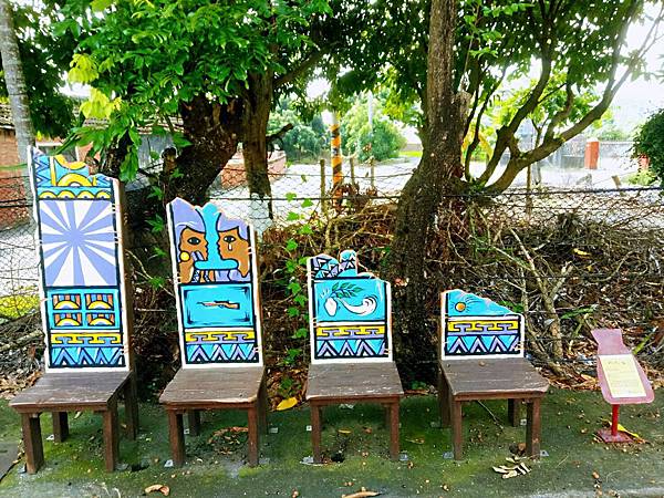 村莊內可在牆壁上見到孩童的藝術創作,融和當原文化繪制、手作而成。還有運用西拉雅族幾何、、鳥、狗、馬及人物圖紋創作的休憩座椅、涼亭。