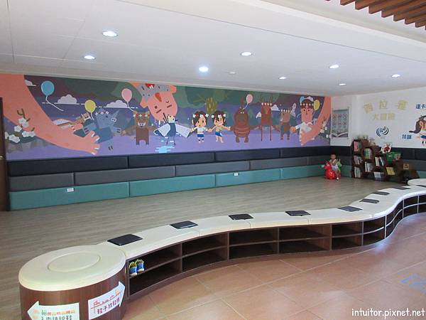 中埔遊客中心內櫃台前方設置了休息座椅、兒童遊戲區。遊戲區兩旁牆面上有設置自動消毒的酒精機。入內需脫鞋才能遊玩。這裡提供了簡單幾樣玩具、童書。牆面上有黏貼緩衝軟墊。