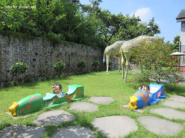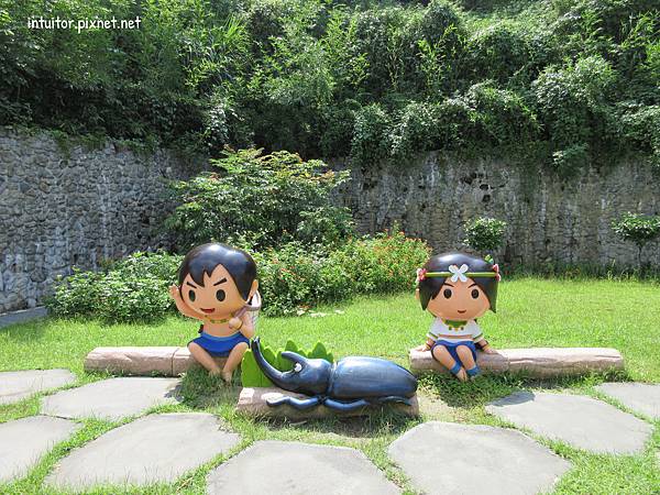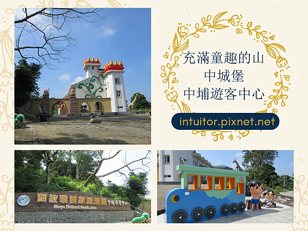 好不容易開到了中埔遊客中心。建築物外型設計成如同城堡一般,廣場上有獨角仙、毛蟲、火車、西拉雅族公仔…充滿童趣的氛圍,相當適合拍照。