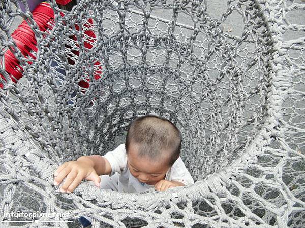 媽媽,我出發囉!「時空隧道」連結第一版本的雙層攀爬網一樓。遊戲空間更多有變化。