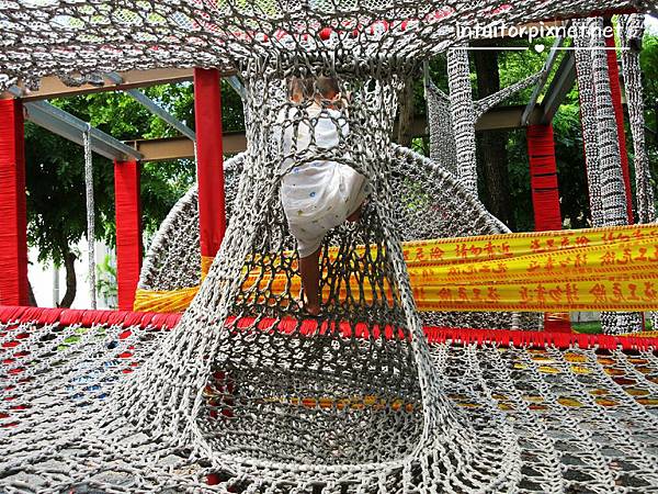 利用立德公園原有H型鋼,由曾靖婷設計師和熱心的民眾一同編織而成的編織網。