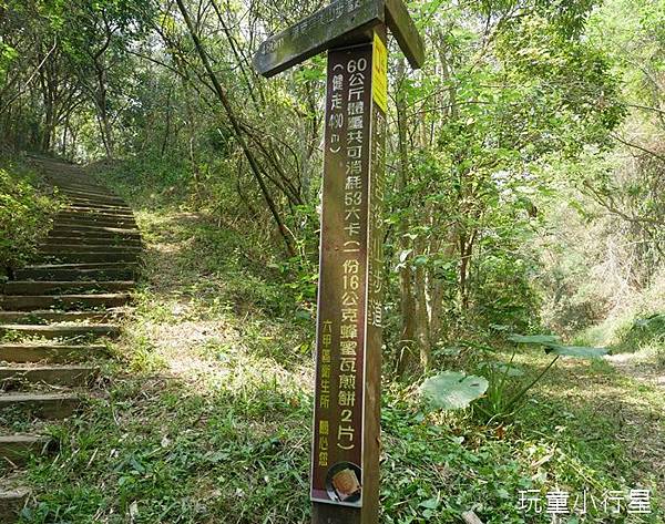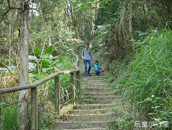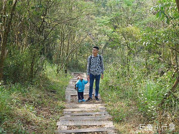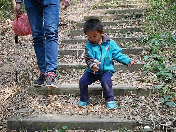 路面以石階、土為主,坡度不大。行走長度只有990m,整體來說行走起來輕鬆自在。若有幼兒隨行,很容易遇到討抱情形產生,這時我都會抱一小段路先緩和他的心情,沿途不斷鼓勵雞腿寶自己行走。