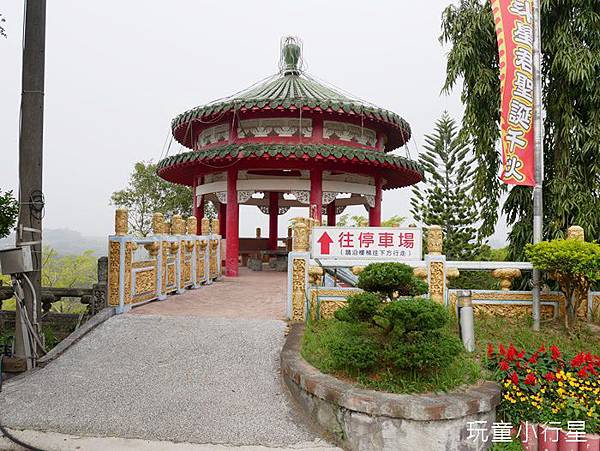 停車場空間很大,可在下方停好車後再走樓梯上來,會經過涼亭。涼亭前方的停車格是給參拜民眾使用的,一般登山遊憩需停在下方停車場。