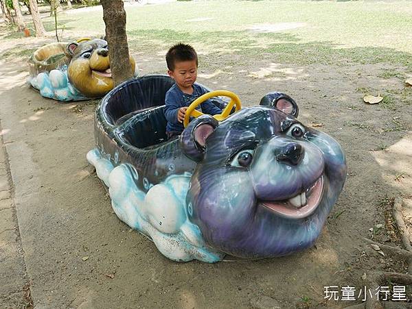 遊戲場旁出現了兩台看起來好像外頭收費遊戲場的小車,放在校內讓小朋友乘坐體驗一下使用方向盤的樂趣。