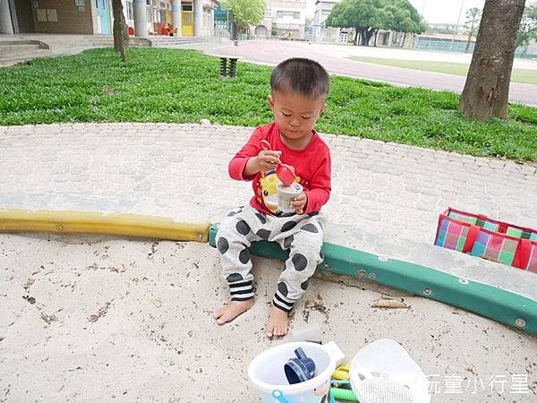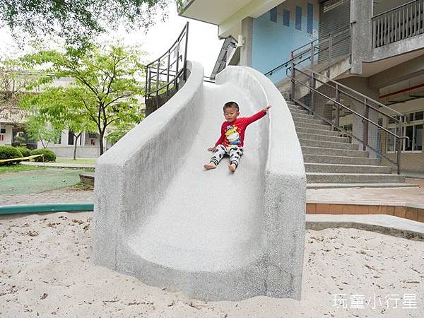 下課後可以從溜滑梯溜到沙坑遊玩 ,沙坑面積目測比鄰近善糖國小小了一點。