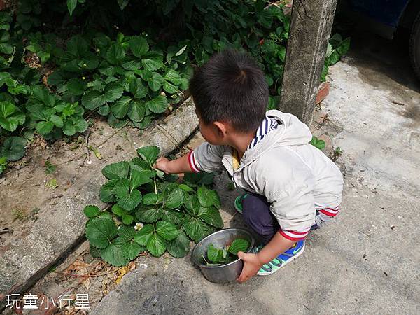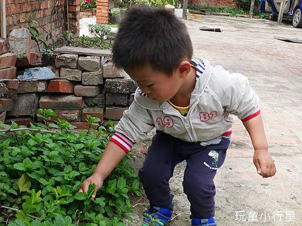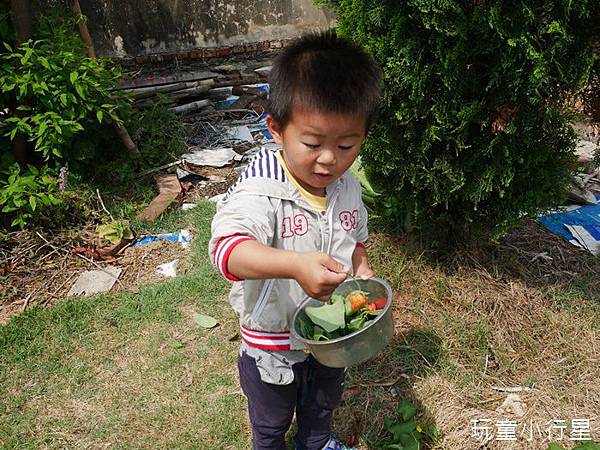 玩法步驟1:進行葉子採集,這天我們摘了草莓、薄荷、梅子、蕃薯葉、九重葛、黃金側柏。摘除的同時也可以讓兒童聞一聞葉子的味道,這天摘的葉子裡薄荷的味道最為明顯。