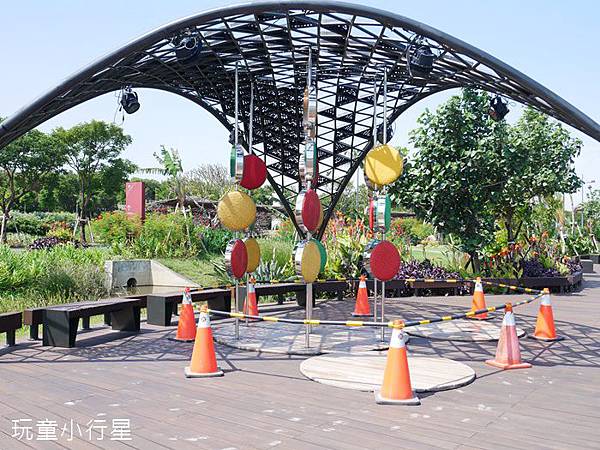 偌大的園區內還有腳踏車道,幫孩帶台兒童腳踏車,大人可以到遊客中心免費借腳踏車,親子一同享受乘風樂趣。鄰近蒜頭糖廠,順遊搭五分車,騎腳踏車在朴子溪自行車道欣賞田間風情。