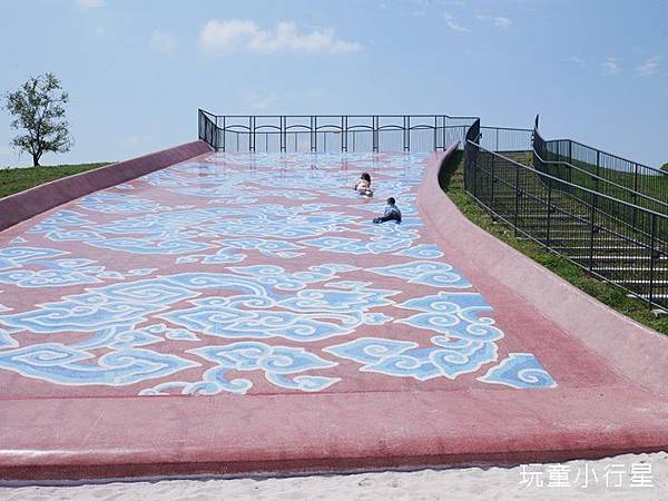 嘉義故宮南院2020年4月兒童節開放了新設施,紅地雲紋大坡面滑梯+伊萬里鯉躍龍紋大盤戲水區+白螺沙灣,地點接近兒童創意中心入口門外。院方非常貼心的還準備了玩沙玩具讓小朋友借用!戲水區玩水好清涼,還有復古的打水幫浦。紅魔毯大坡面滑梯好刺激!