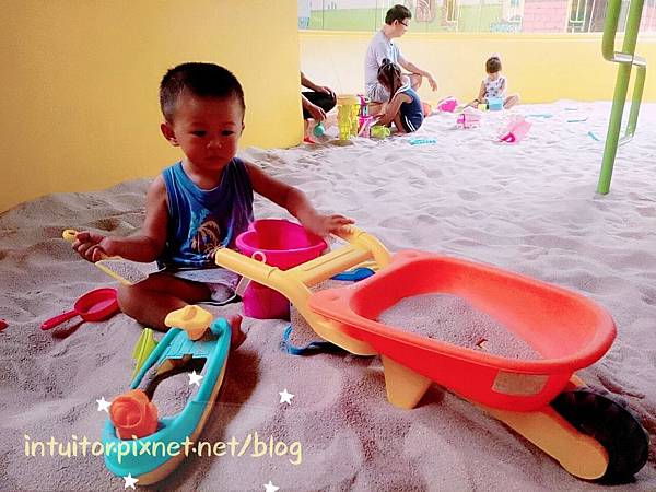 ★沙坑內有提供玩具,館內有扮家家區、圖書資源、嬰兒爬行區。