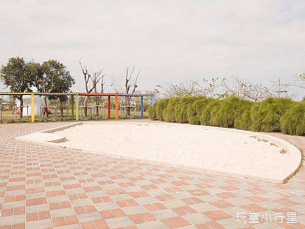 ★磨石滑梯溜下來就是沙坑,沙坑較小,假日人很少。