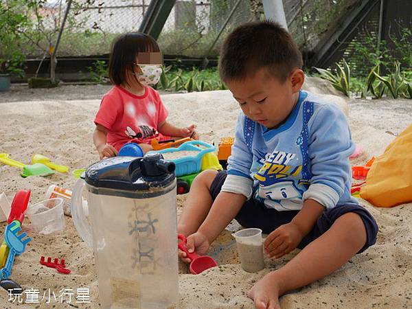平日來到這裡玩沙的人也不少,這裡的沙坑保持的挺乾淨的,有遮蔽物,還能欣賞美麗的蝴蝶。史博館旁的道路就有自行車道(山海圳綠道&雙博物館),可惜這裡只有Tbike可以租借,如果要載幼童騎乘腳踏車就必需自備。