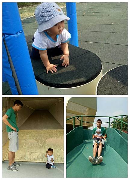 滑梯材質非一塑膠溜梯,在炎熱的太陽照射下溜下去會覺得很熱。