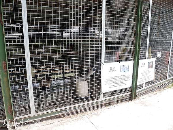 孔雀&金雞被關起來了,只能透過小空隙看牠們。
