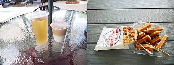這天我們二大一小(2歲),點了蜜茶、咖啡、鬆餅、口袋型pizza。各一百元。蜜茶我個人覺得有點太甜。