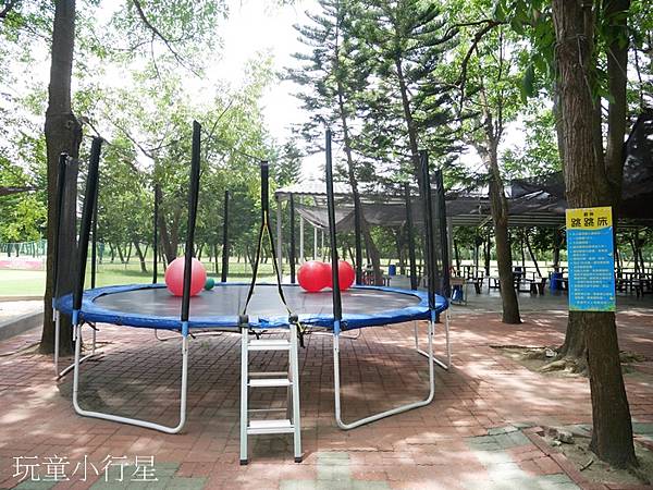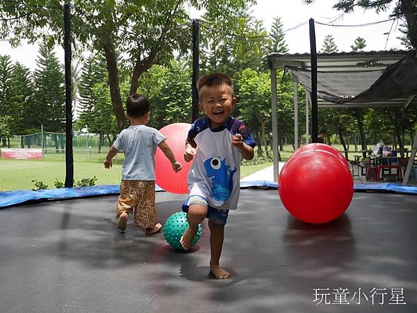 最近很喜歡跳來跳去的Ryan看到彈跳床當然要下去玩耍一番,裡面還有放置大球,小孩很放電。上方有遮蔭。
