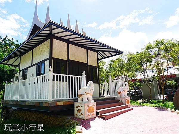 這間以泰式風情為主題的景觀餐廳,免門票可免費入園參觀,餐廳低消一人一百元。園區內的藝術品是老闆從泰國挑選客製進口回來的。園區整體的景觀佈置、建築物瀰漫了滿滿的泰國風。