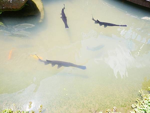園區內有多處漁池,不可以餵食。照片中黑色大條的魚完全跟我平時看到的觀賞魚大相逕庭,一看就是名貴的魚。