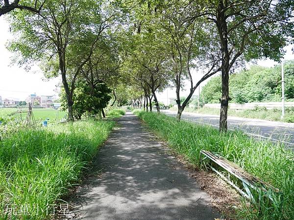 自行車道沿途不時可見休憩座椅,有的休憩區明顯可見椅子已殘破不堪。車道旁的雜草叢生,不曉得會不會擇日整理,這天我們一路前行看到了好大一隻肥老鼠橫越車道。