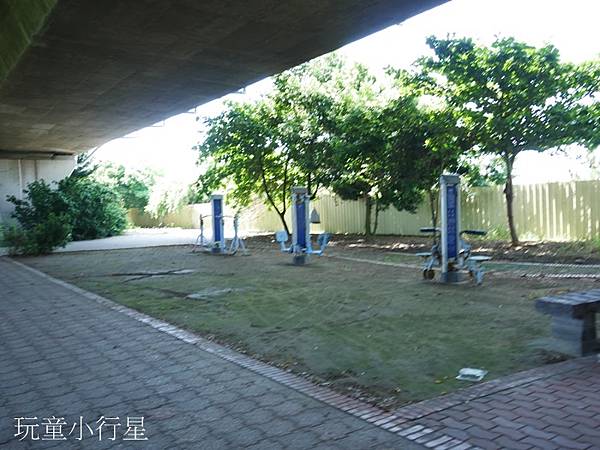 橋下有設置成人建體設備和兒童遊具,看起來外觀老舊,可能都無法使用了。我甚至懷疑這些設備根本沒有定期維護。