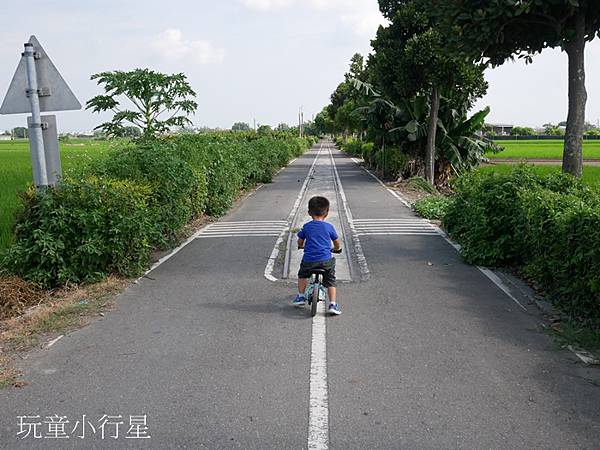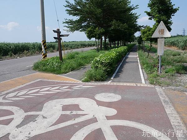 偶爾行經路口時要注意停下來看看前後左右。一路上還能看到台糖鐵道留有的交通標誌,到這裡我們還沒有看到任何鐵軌在路面,Ryan顯得有點失望。