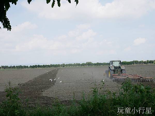★農村特色景象,牽引機翻土時,成群鳥兒尾隨在旁覓食