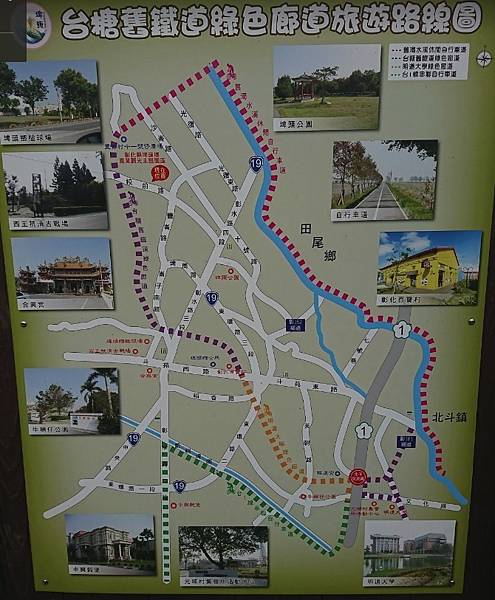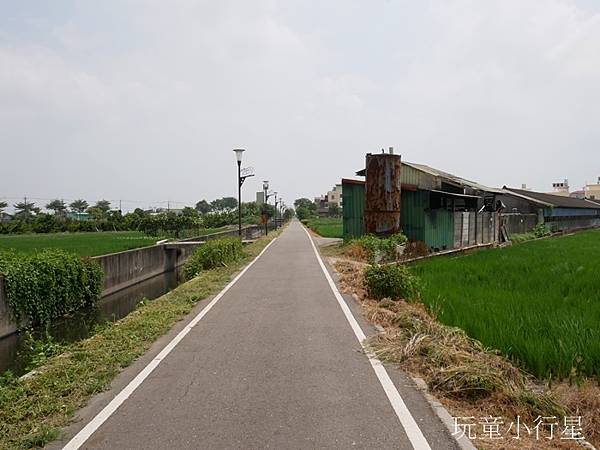 這條右轉後直行大約一公里後,看到有紅綠燈我們就沒有再往前騎,看了一下路線圖後我猜這條會接到舊濁水溪自行車道,又名東螺溪自行車道。