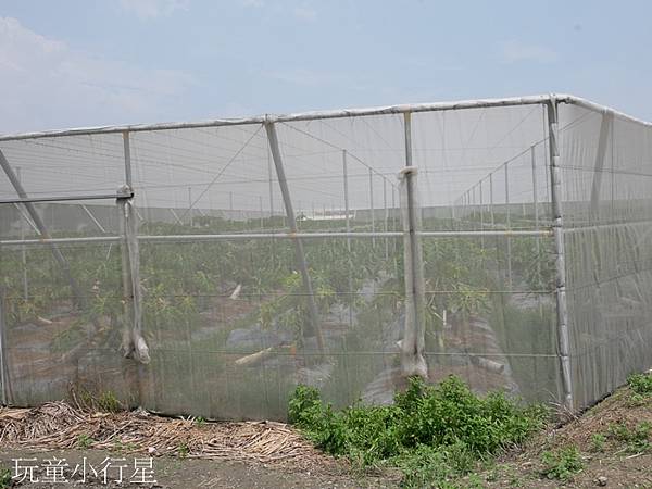 看到這網室木瓜內的枝幹都是歪斜的種植,不禁引起了我的注意。