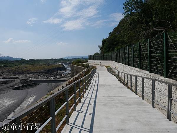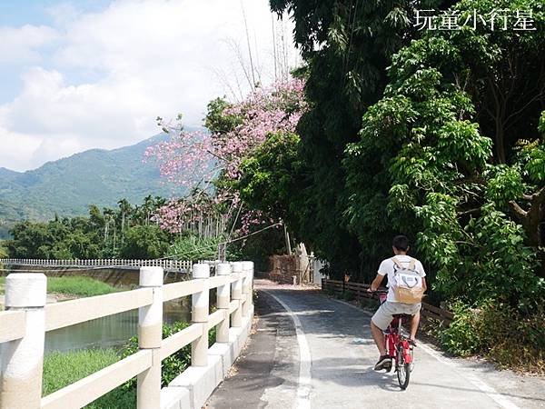 我們看了自行車道的指標,原本以為是從面向泰順廊橋的左側前往,騎了一小段後發現這是一般河堤,不宜騎乘,自行車道是在河流的另一側。