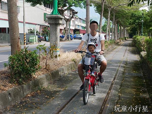 這一舖平的軌道車道,路段中間會有些凹洞,每每行經噗通一下,Ryan便笑的樂不可支。