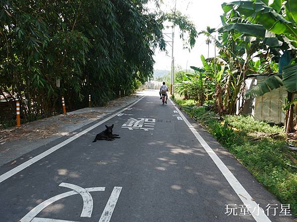 接著我們離開集集車站往林尾橋的方向騎乘,我們在馬路上騎乘,沿著自行車道指標鑽進了鄉間小路,車子較少,因路邊遮蔽多,還是要小心突然竄出的摩托車和汽車。還要小心狗狗路霸~