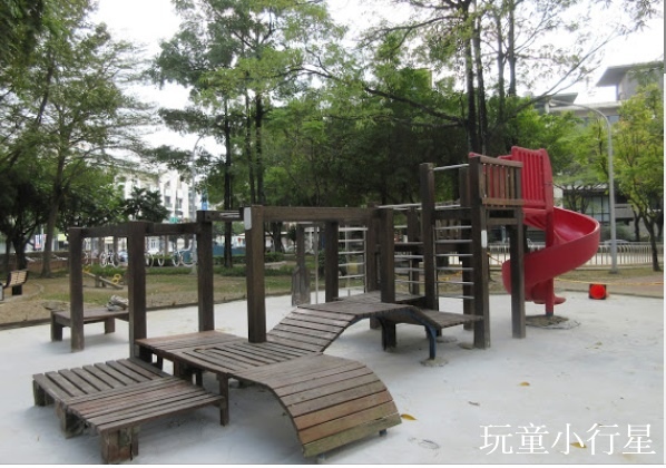 去嘉大附小遊玩時發現這個公園,公園內有沙坑(有用圍欄圍起)、蹺蹺板、滑輪場、涼亭…等設施。車輛可停放在路邊停車格。