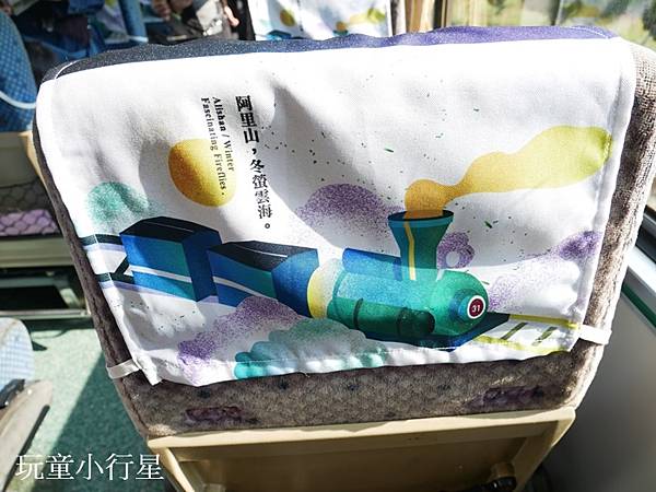 這次搭「戀戀林鐵情」主題列車,座位上的枕套畫出了SL-31蒸汽火車。今年有推出《SL-31蒸汽火車.楓華再現》主題列車,活動僅4梯次。由於集合地點是在阿里山車站,對懶得開車上山的我們來說較為不便,期待未來能有機會搭乘。
