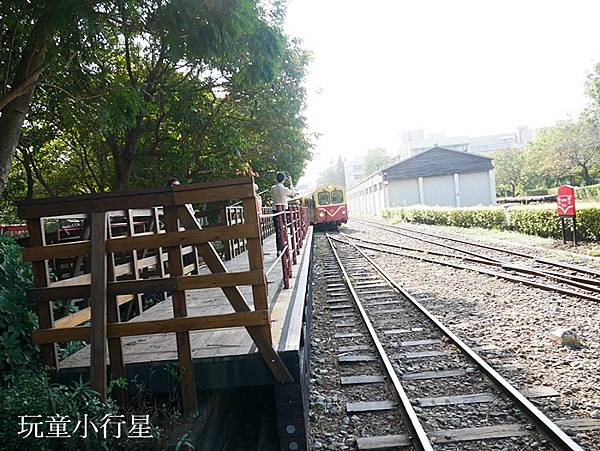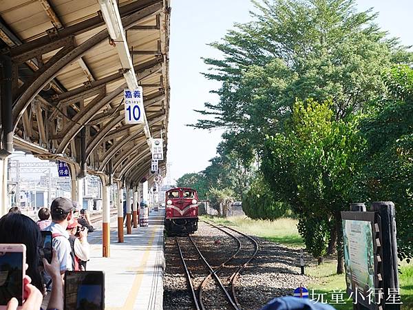 火車停靠在嘉義車庫園區的月台,乘客下車後開往車庫通放暫時休息。這時我們就在車庫園區及對面的嘉義東洋第一制材所遊玩。
