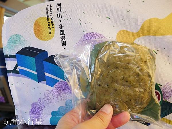 在麻鹿產車站拿到了草仔粿當點心,滋味美好,我兒在車上吃得津津有味。