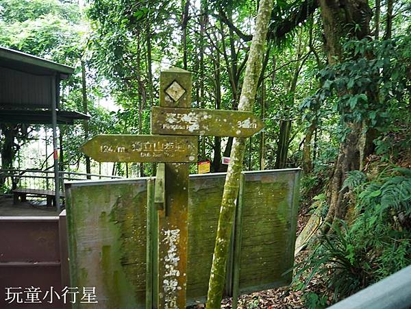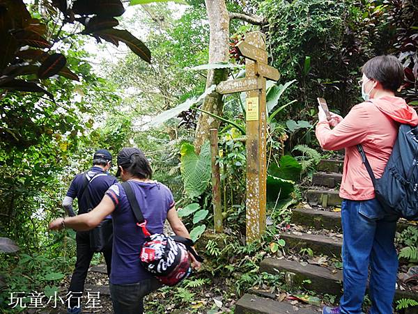 回到獨立山車站時我們沒有走原路回去,從小吃店離開後從攤販旁的步道走回,這路段的階梯較少,部分路面濕滑,我兒下階梯時踩到潮濕的葉子跌了一跤。