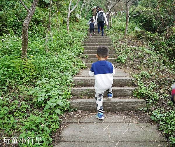 接著要準備吃午餐了,我們往第九號隧道旁的斜坡上坡,步行約十分鐘,階梯數看起來也不少。一路上稍歇時他說他有點累,本來以為兒子會要我抱,還好他今天有堅持自己走成功,。